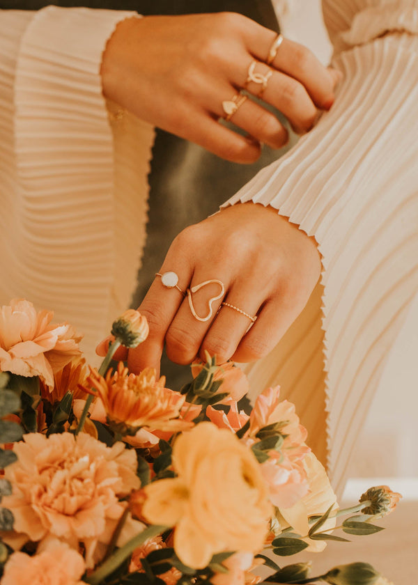 An open heart statement ring with serious presence. Bold enough to wear solo, cool enough to stack. For when you want your jewelry to do the talking.